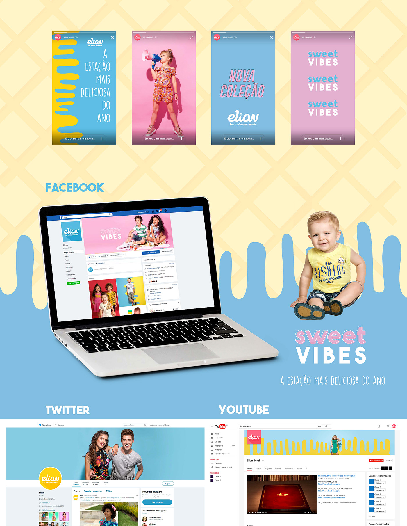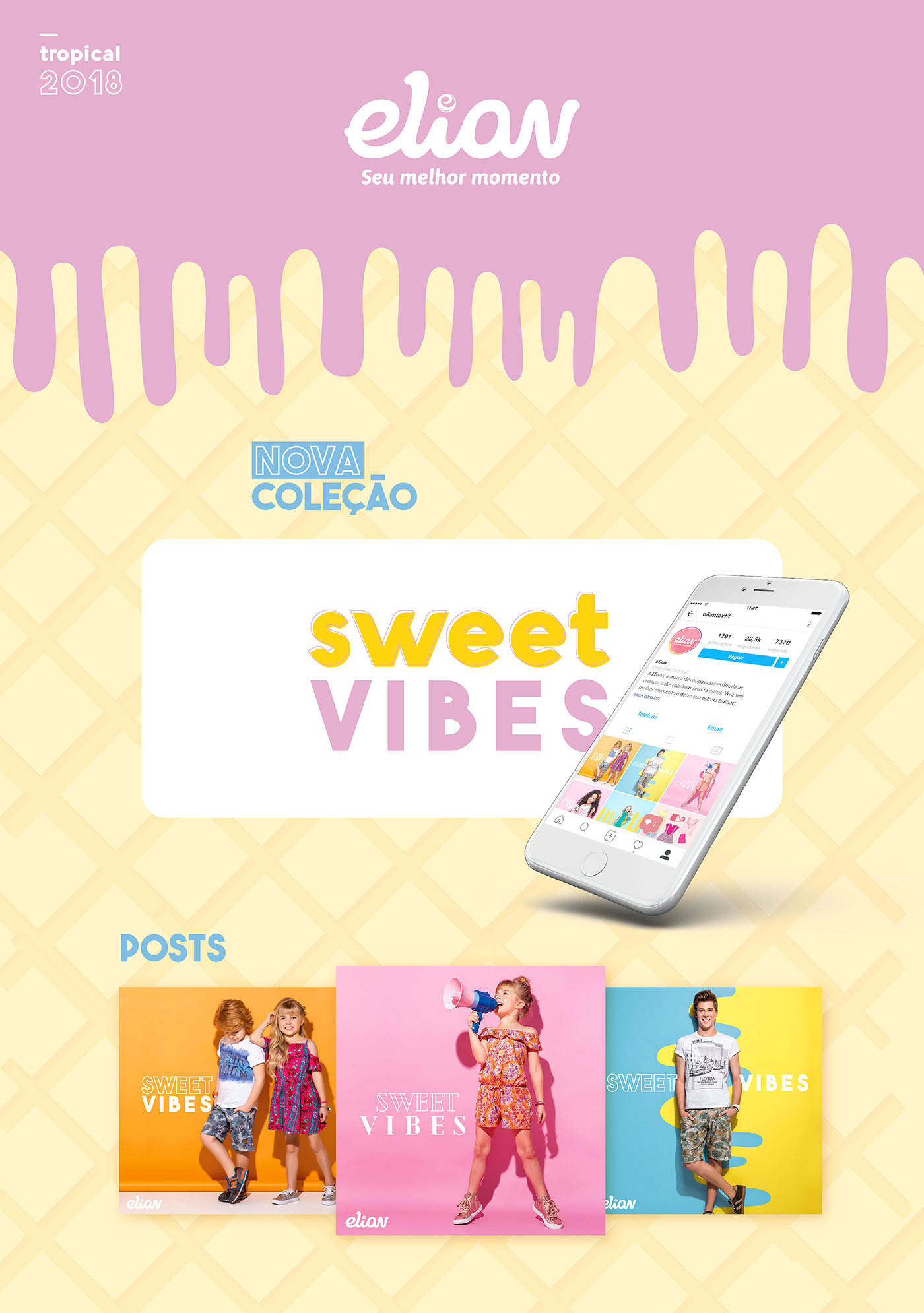 This digital campaign for Elian Têxtil’s Summer Collection aimed to capture the light, sweet, and vibrant essence of the brand. Using a pastel color palette inspired by the collection’s prints, the campaign aligned with the brand’s omnichannel strategy. It included CRM materials, personalized landing pages for retailers, social media content, digital catalogs, and targeted ads.
